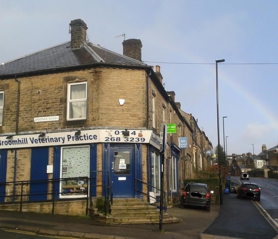 We are a proudly independent, small animal practice, located at 13 Crookes Road in Broomhill, Sheffield (on the corner of Spooner Road and Crookes Road). There is disabled access to the practice via a ramp at the front entrance, and there are extra wide doors throughout.